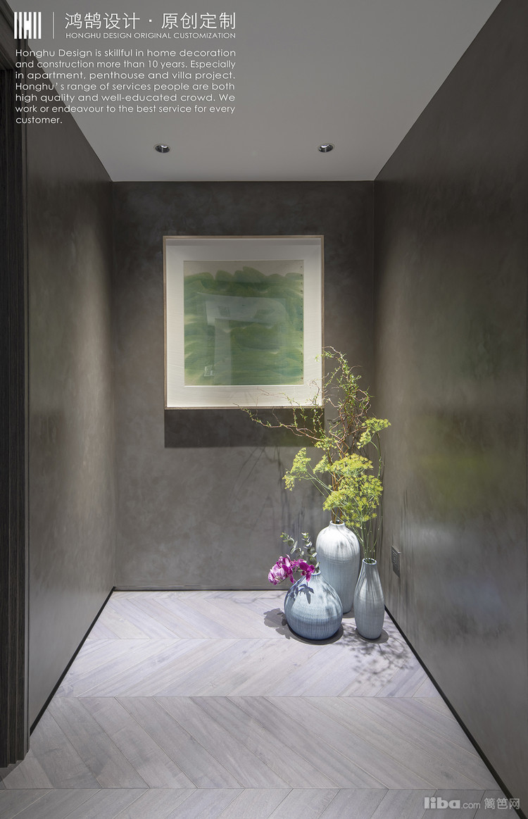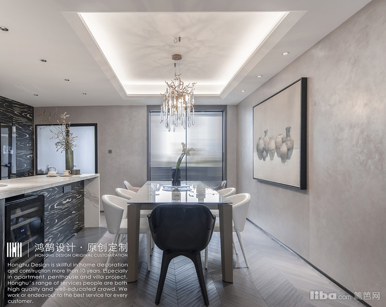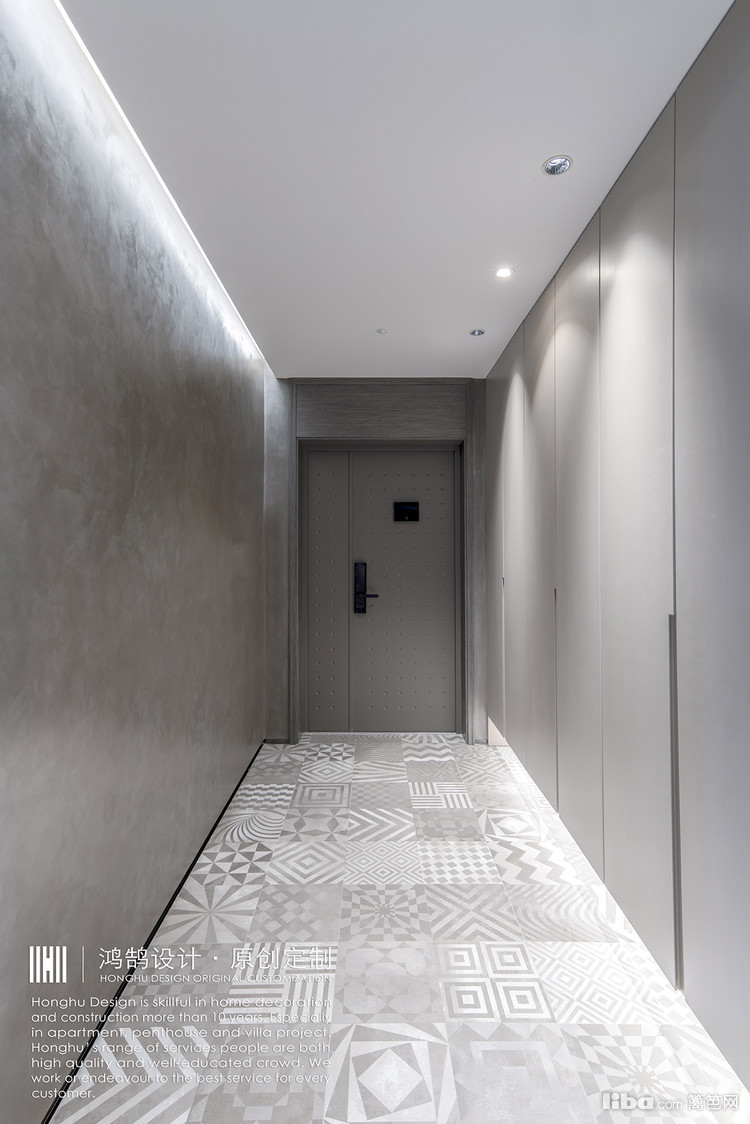 整体的设计,我们从灰色调入手。选用的艺术涂料,烤漆门板,以及拼花地砖,都是灰色调,延伸到客餐厅