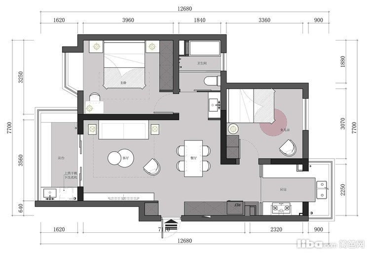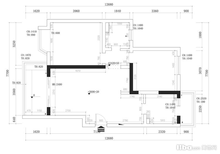 想浴缸和干湿分离,原房型两个房间门是正对的想要区分开来给彼此一些隐私。不要开放式厨房,操作空间要大