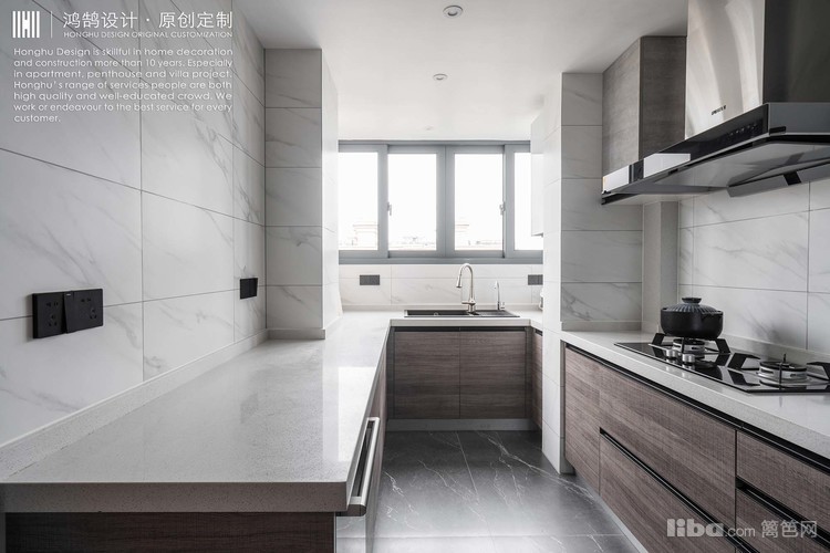 改造后的户型打通了北阳台,外扩出U型厨房,大大增加了厨房台面操作空间,满足屋主日常生活需要。