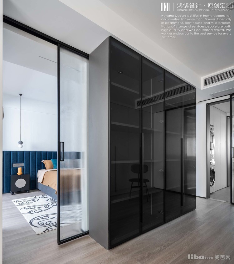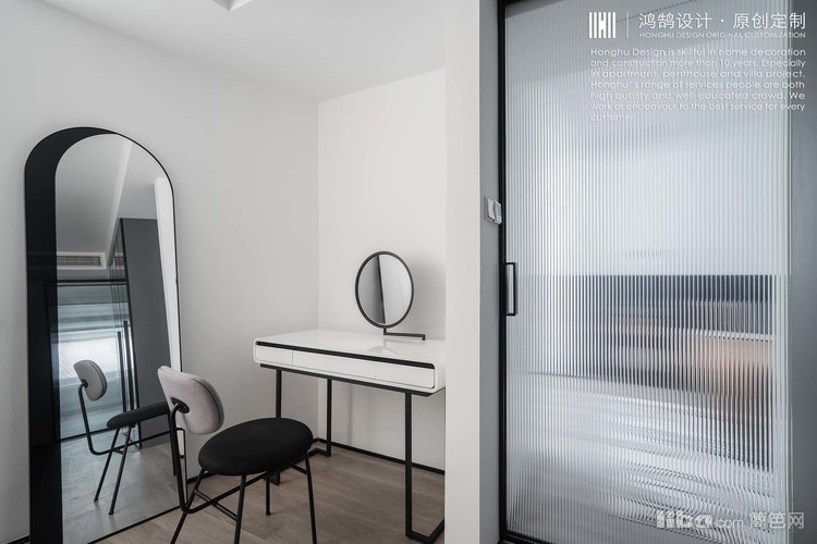 根据女主的衣帽间需求,我们将原先一个卧室改为了超大衣帽间,形成卧室+衣帽间的套房格局形式。