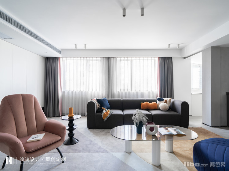 原始户型层高较低,我们在吊顶的设计上,尽量保证不压低层高的情况下,去做局部吊顶设计,保留中央空调必要的吊顶区域,加上侧边挂边吊顶的方式环绕,能够保证客厅采光效果,视野也非常宽阔。