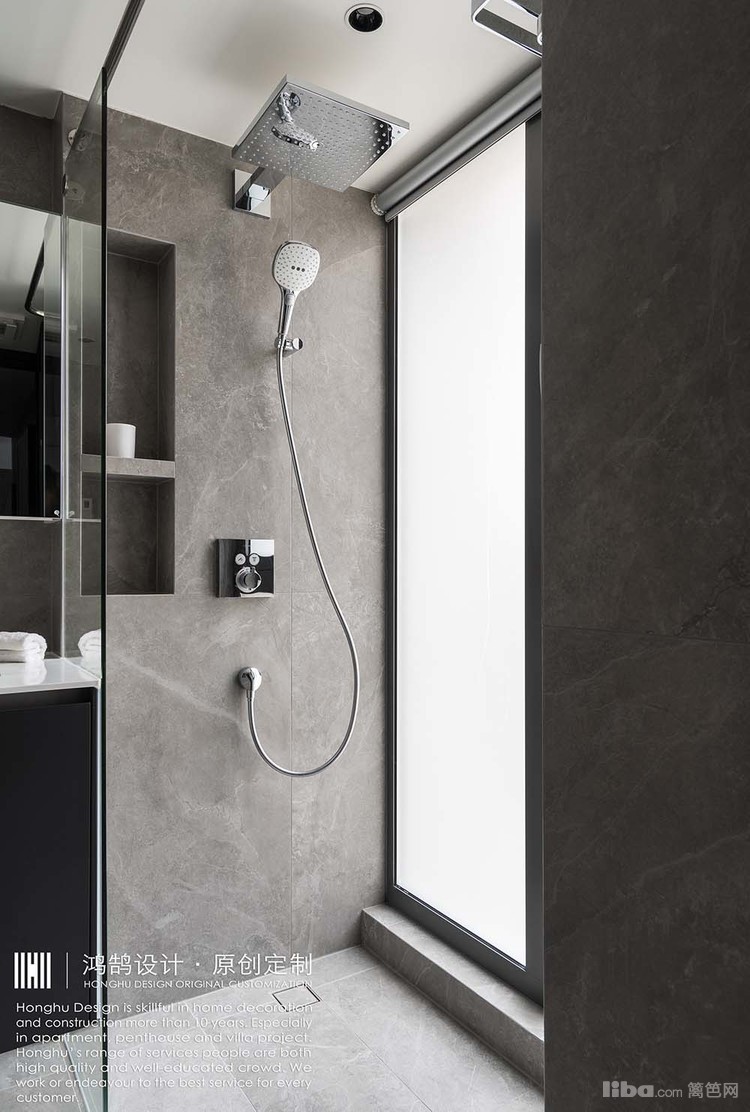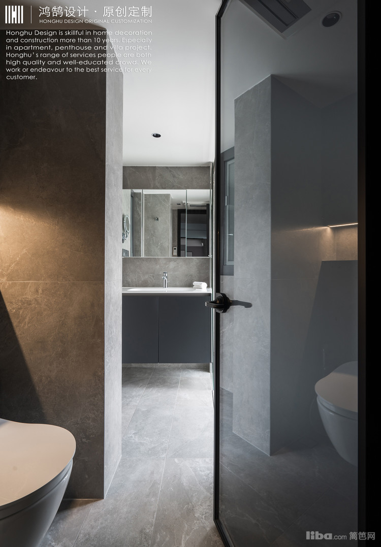 原先的暗卫经过改造后,采光性有了很大的改善。进门选择窄框灰色磨砂玻璃门,保证了私密性同时让光线很自然地可以进入室内。