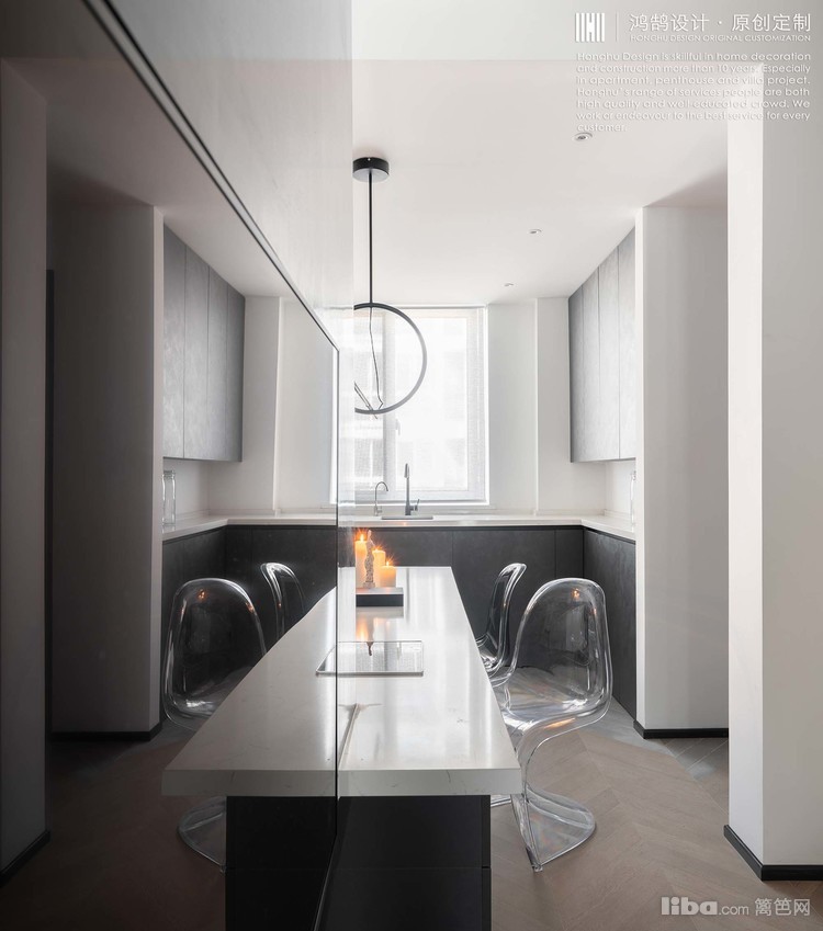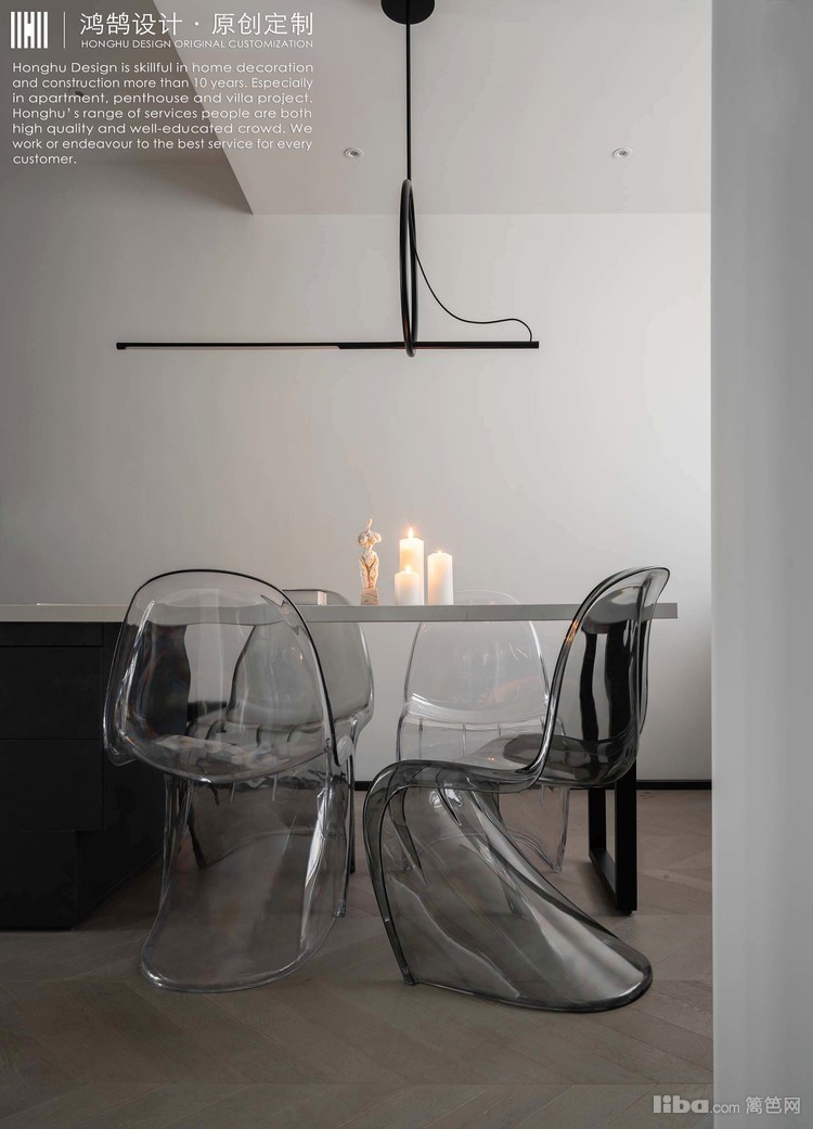 灯具、餐椅都是在TB购买的,透明材质的椅子具有良好的视觉通透性,在较小的空间可以得到很好地运用。