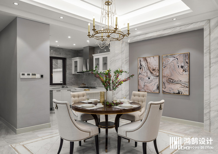 有水晶灯的精致感,也有装饰画和花艺相映的喜气,日常之物也能让简单的生活发光发亮。