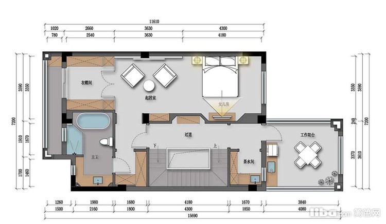 本案是三代居住的舒适空间,在整体空间色彩搭配和造型上,希望是暖色调