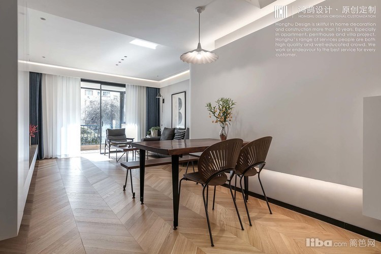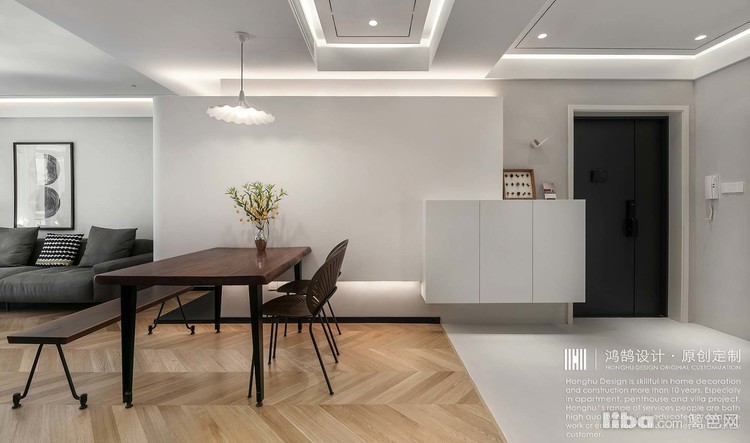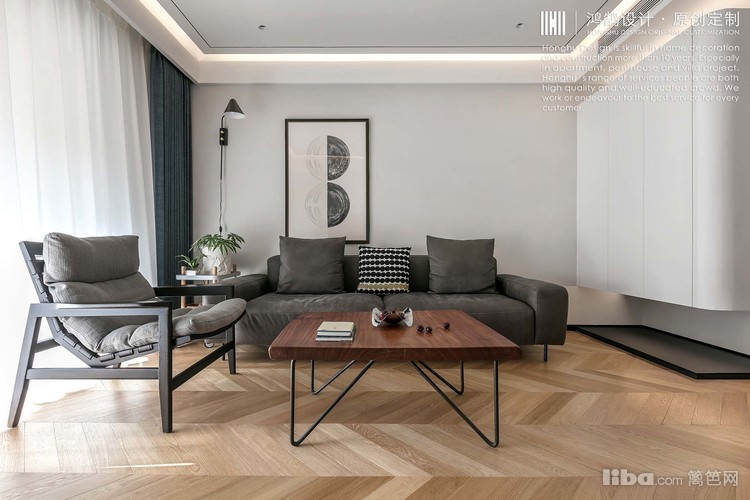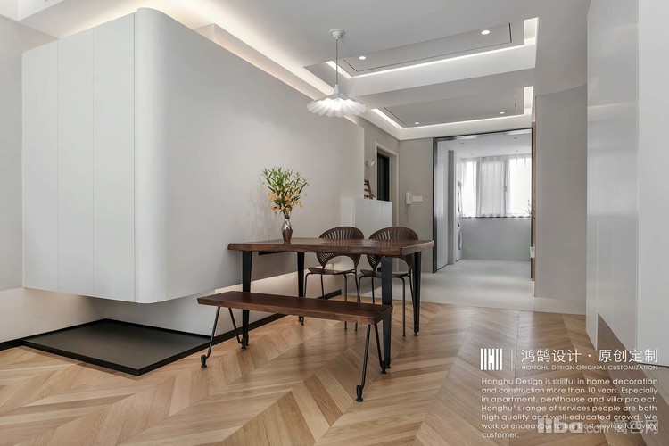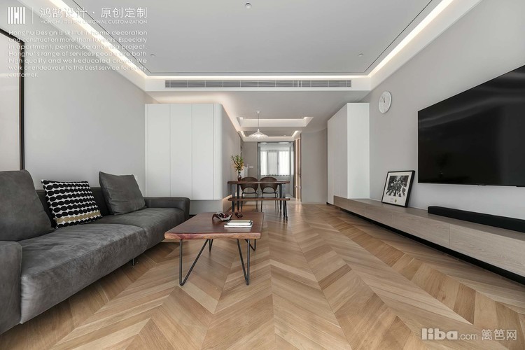 整体颜色采用灰色搭配白色突出空间层次对比,鱼骨拼地板让空间更有高级感,整体闲适、清闲安逸的生活 !