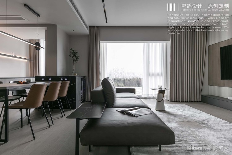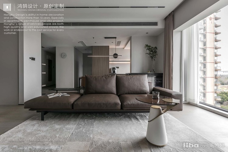 为了利用客厅外部设备间,设计师把地梁打通后,扩大了整体客厅空间,并更换大面积落地玻璃窗