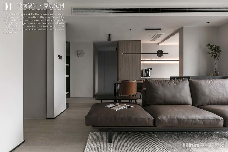 墙顶面转角内嵌L型灯条,作局部装饰增加进门仪式感,兼顾了照明,灯条替代筒灯让墙顶面更加干净平整。