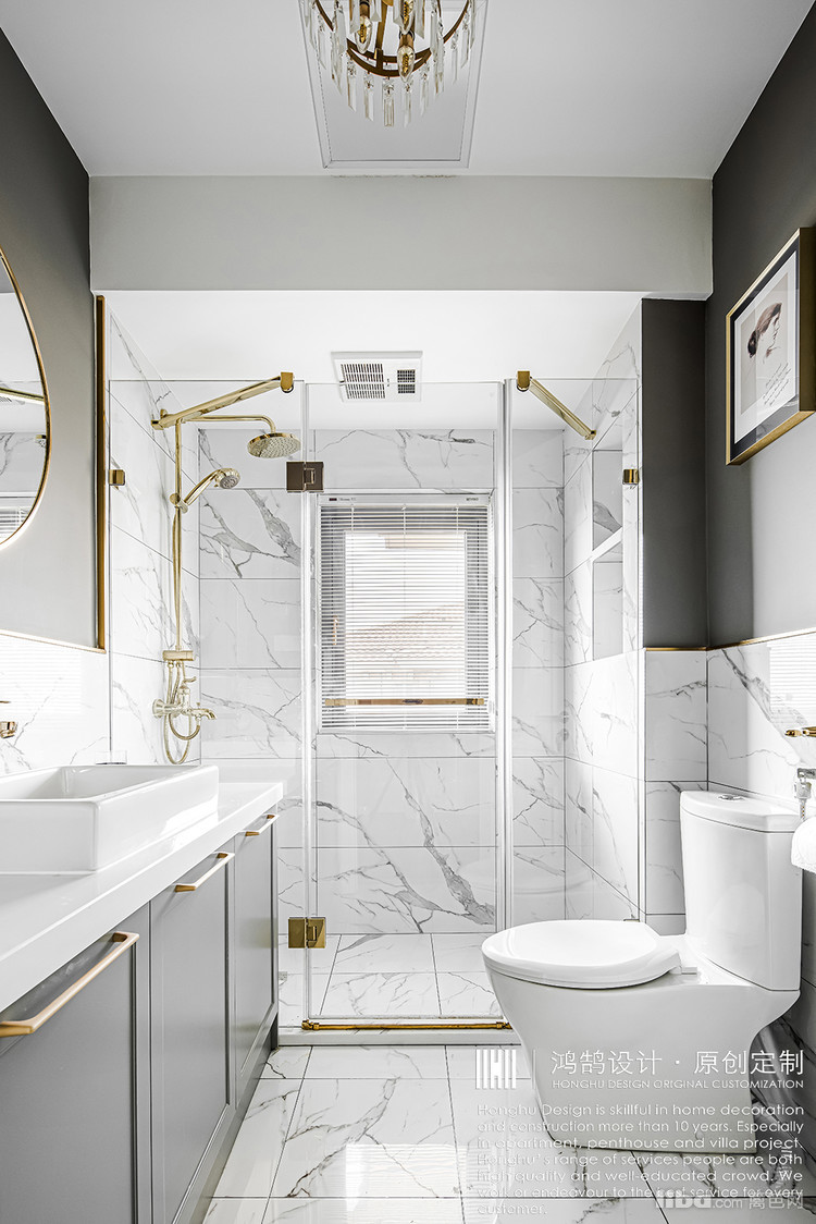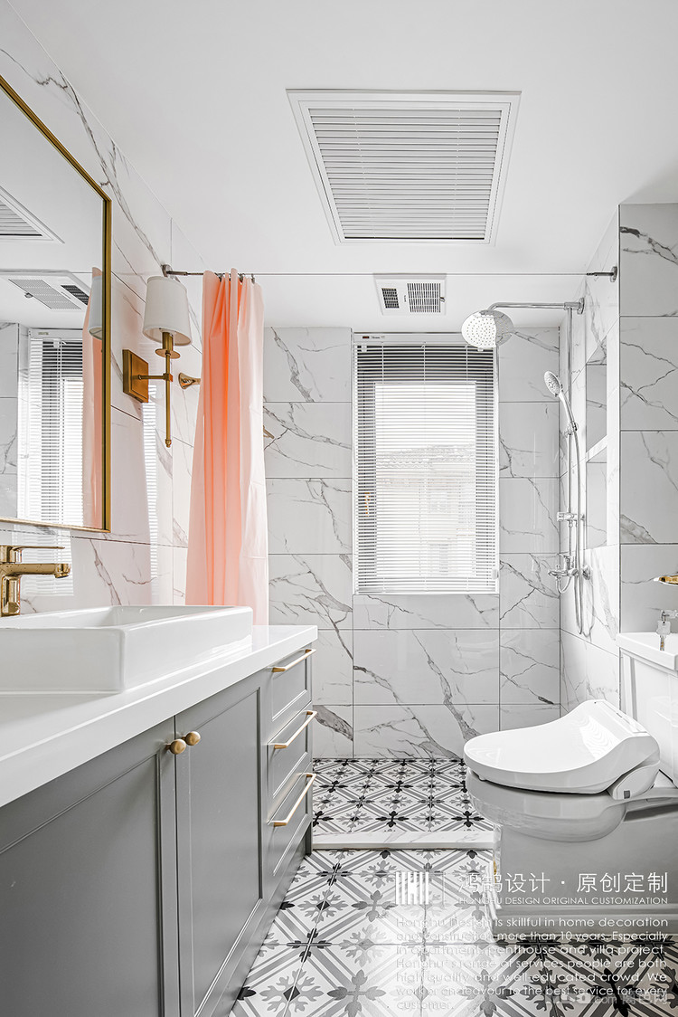 卫生间没有选用常规亚克力吊顶,而是运用防水漆吊顶,满足业主简洁的需求,同样在颜色上面也更符合整体氛围。