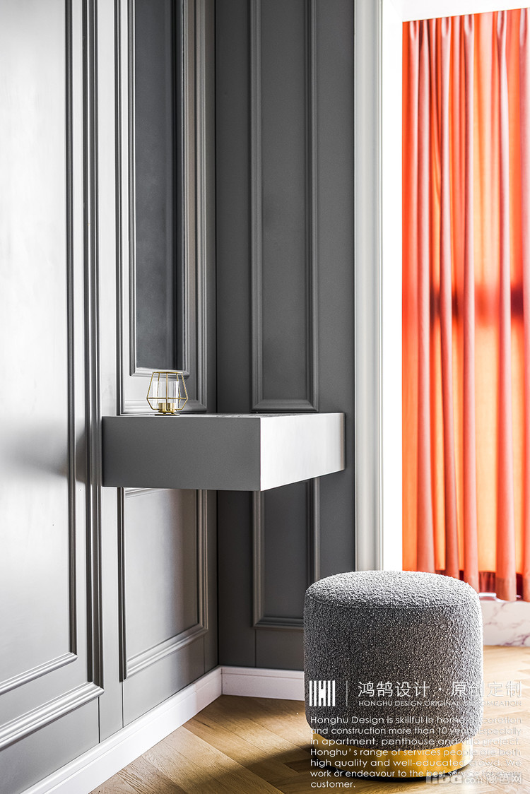 业主喜欢鸿鹄一套灰色系案例,但是整木厂里面并没有同质感的色调,设计师多次与厂商沟通,确认颜色,一直到还原至现场的灰色,过程比较心酸,结果还是令人欣慰
