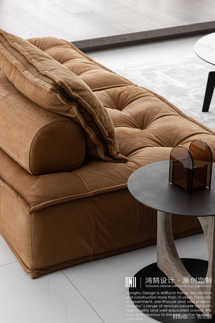 从格局到风格最终定义呈现了现代简约的风格氛围,大空间里的自由的灵魂,整体色系以黑白木(焦糖) 线条勾