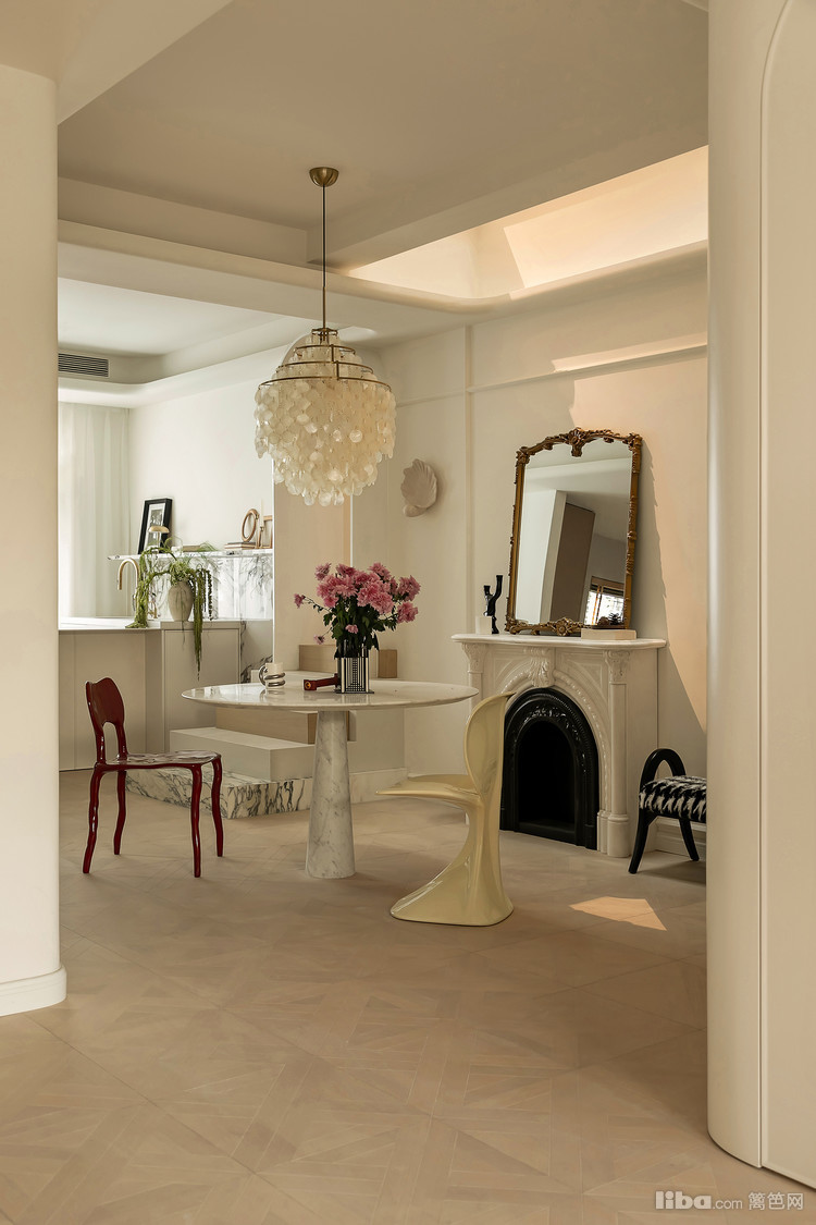 将最优质的自然光线引入到用餐,在用餐时充满了更多的仪式感!吊灯是一款极具艺术气息的verpan(fun系列)贝壳灯,搭配上maarten baas设计的黏土系列clay chair
