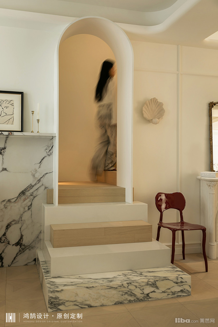 将二楼卧室打造成了一个套房空间,既保留了法式的浪漫与优雅,又确保了各个区域的独立性。