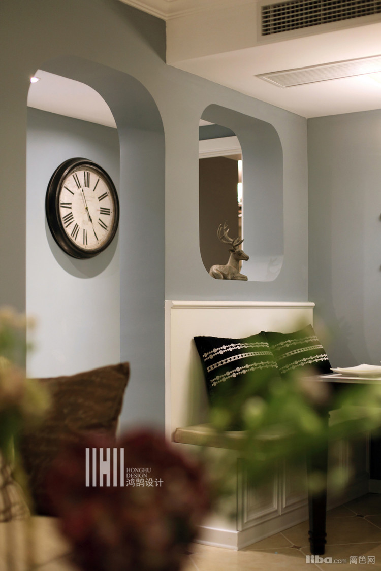 第一眼就被沙发背景墙的画给吸引住 自由女神像和埃菲尔铁塔 已经让我们知晓了业主的风格