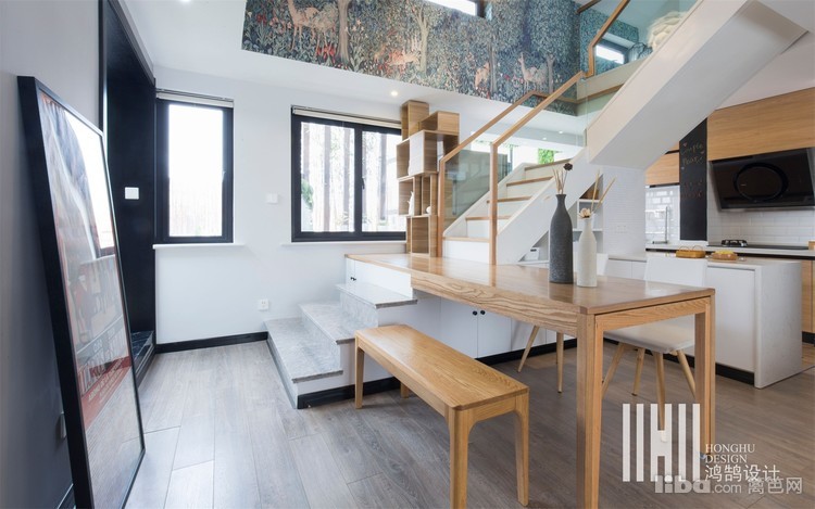 跳空的空间 餐厅 吧台 卡座 露天休闲区加种植 洗衣区