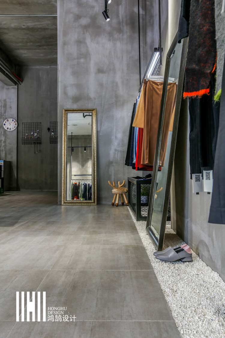 所有的衣架、陈列架、门窗的外框都采用了黑色