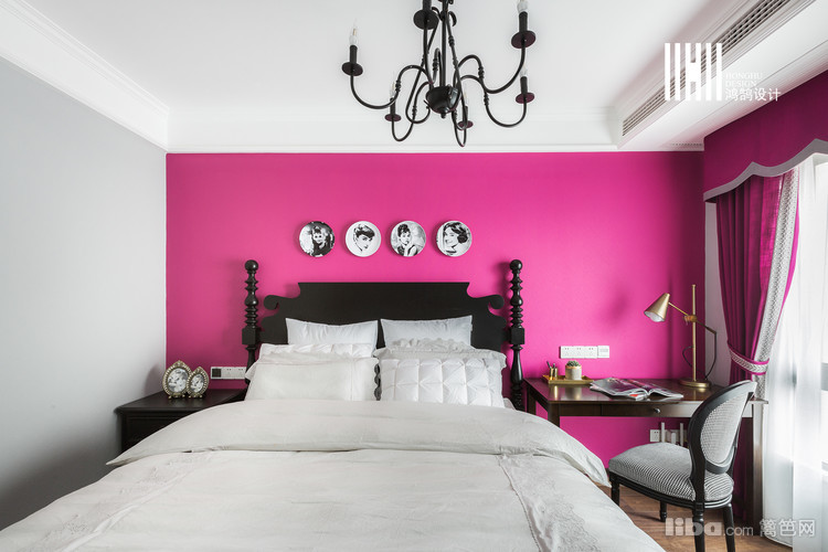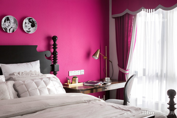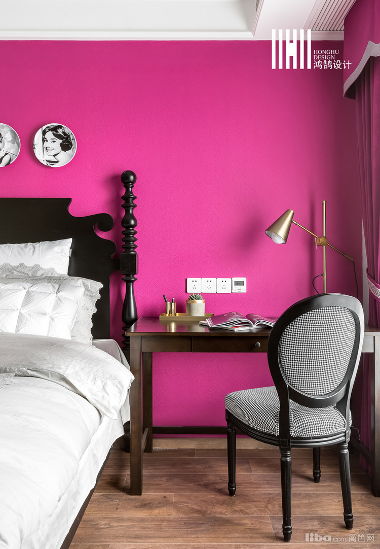 卧室:纯度很高的枚红色做背景,搭配黑色时髦的家具让整个浮夸的空间又瞬间安静下来,可以美美的做个少女梦:晚安,全世界!
