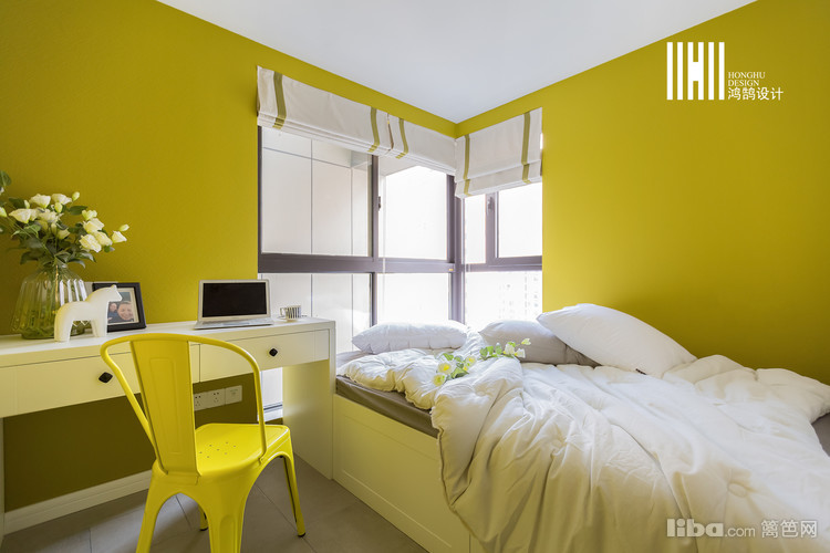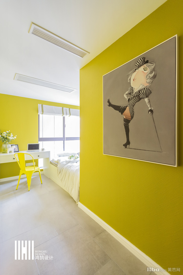 温馨的黄色背景,搭配俏皮的装饰画,道一声:宝贝,晚安!