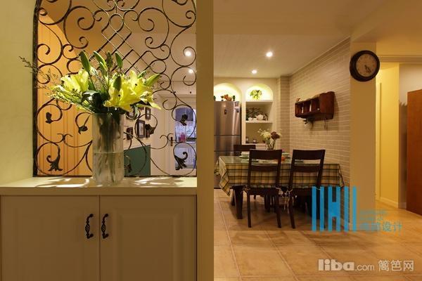 进门首先是个铁艺玄关的设计,对面餐桌的地方原来就是厨房