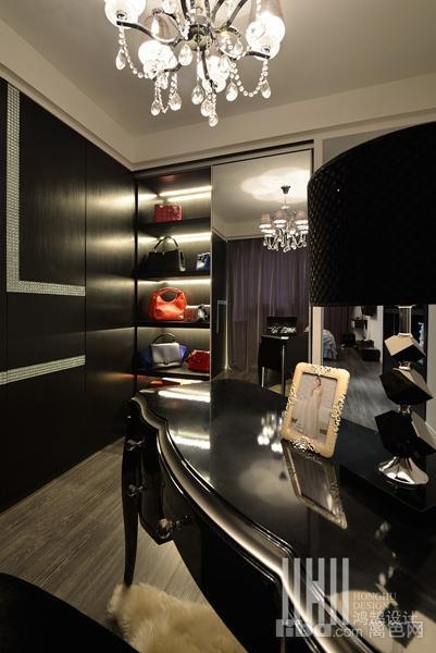 卧室套间内的卫生间,以玻璃作隔墙不是什么大不了的事情,只是黑色的衬底,更显得氤氲暧昧。没事,关起门来,你喜欢就可以,既然小清新远去,何妨手法重一些。