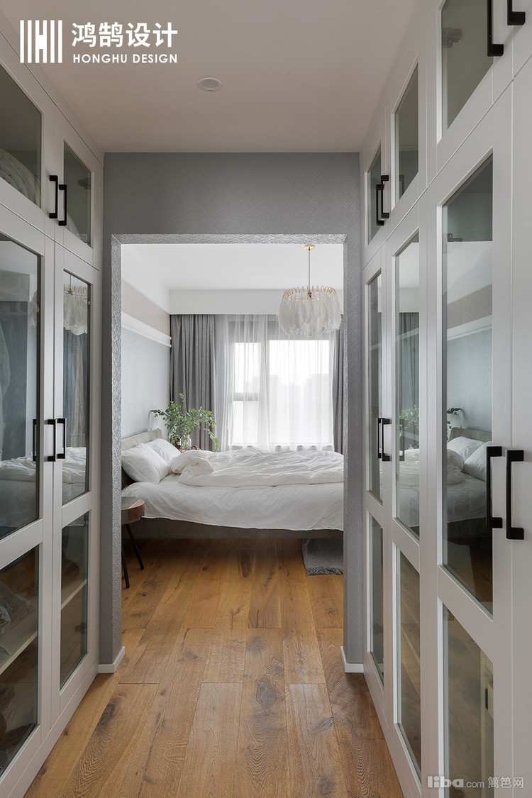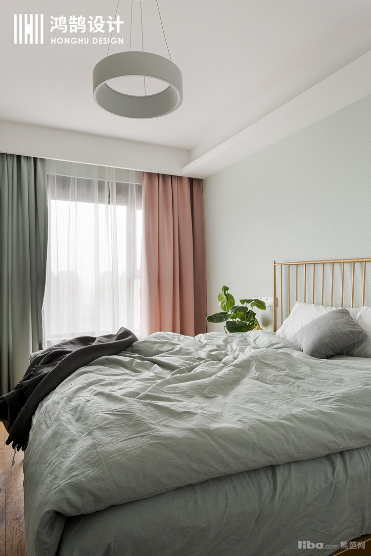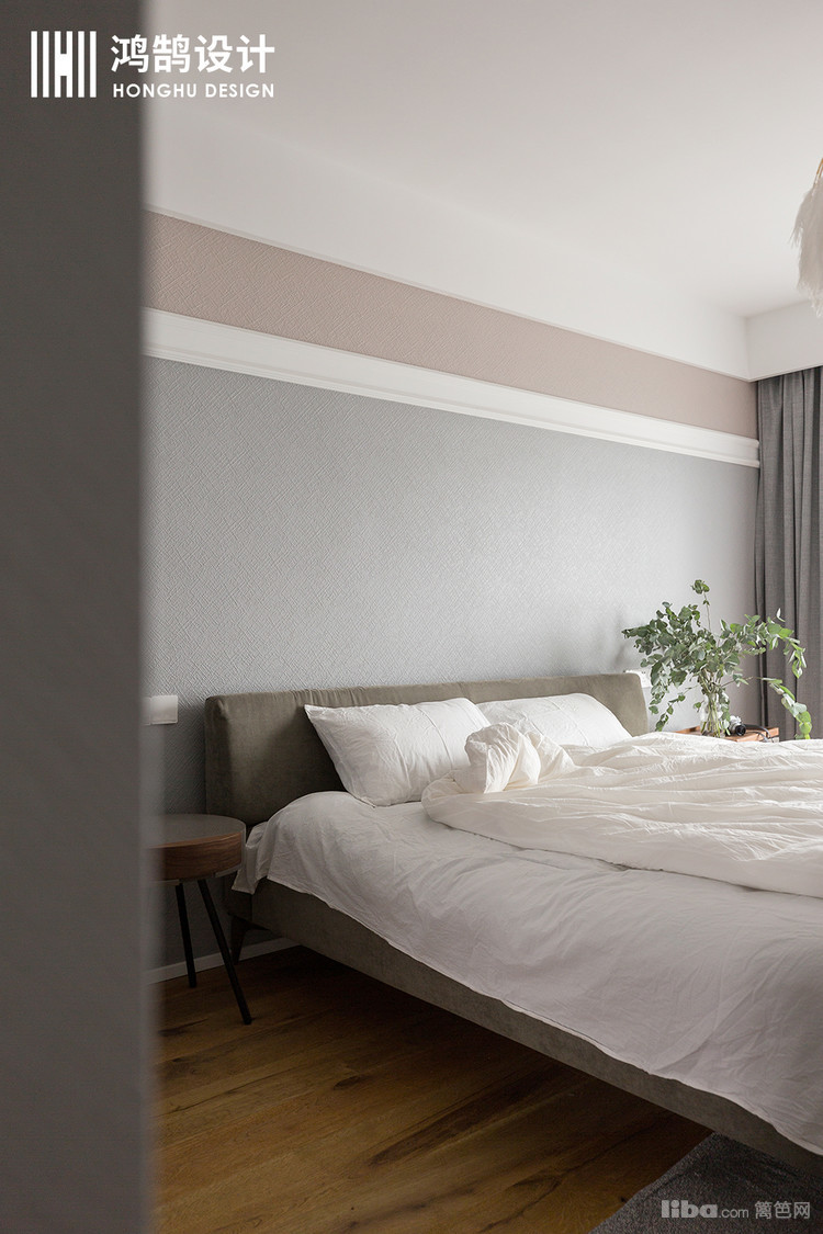 主卧的色彩搭配,细心的人会发现,墙面并不是单一的颜色,而是高级灰和粉色的系列搭配。让整体的睡眠区更柔软,更温馨。