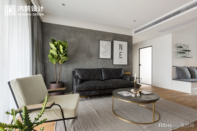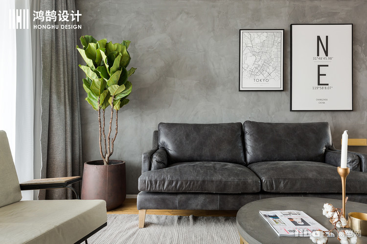 做旧复古的皮质沙发,在水泥灰的映衬下,显得既大方,又原生态。坐在沙发上,犹如在户外的草坪上惬意自然。