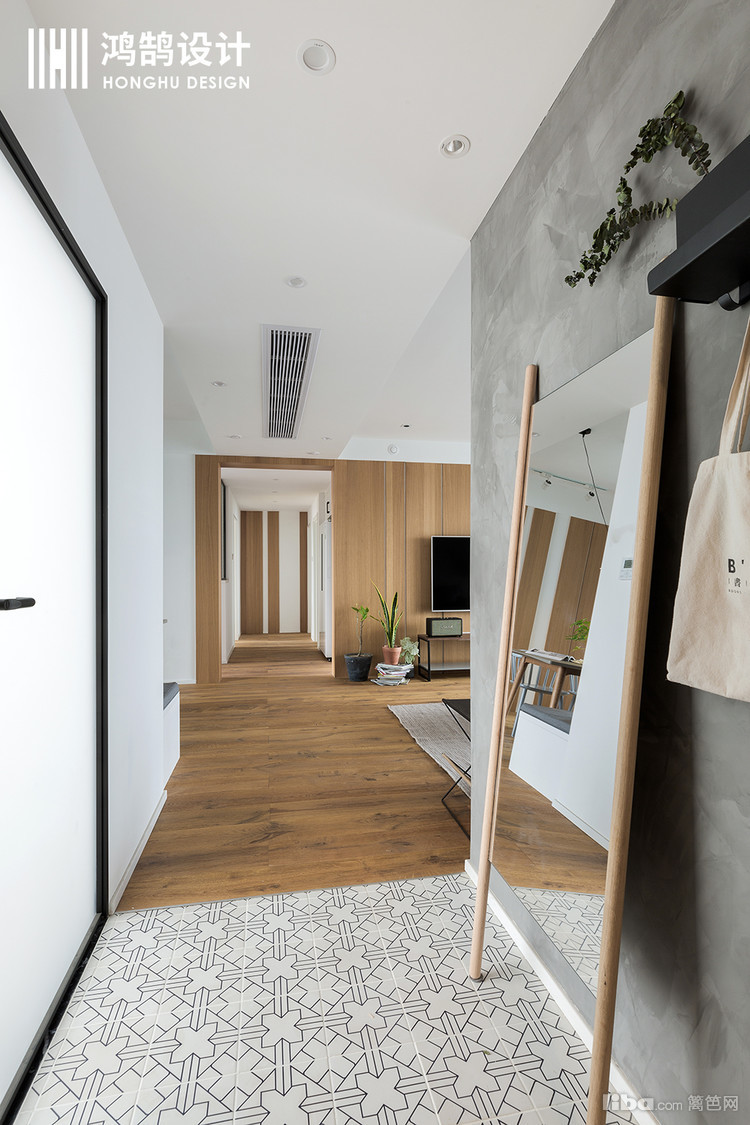 门厅的花砖与地板无缝连接,显得既别致,又舒适。给整体空间氛围营造出一种温馨雅致的感觉。