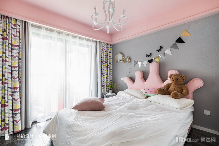 搭配了皇冠造型的床,配上白色的床品,再用了点黑色金色的墙饰,俏皮却不浮夸。