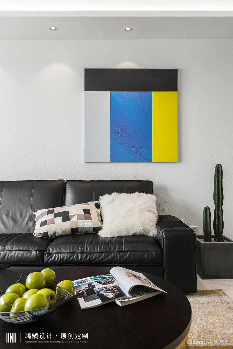 跳跃的黄与主体的黑色相互调和,使得整体空间时尚,颇具品味。设计感十足的落地灯画龙点睛增添了质感