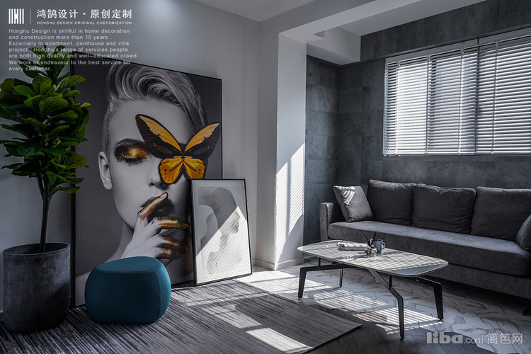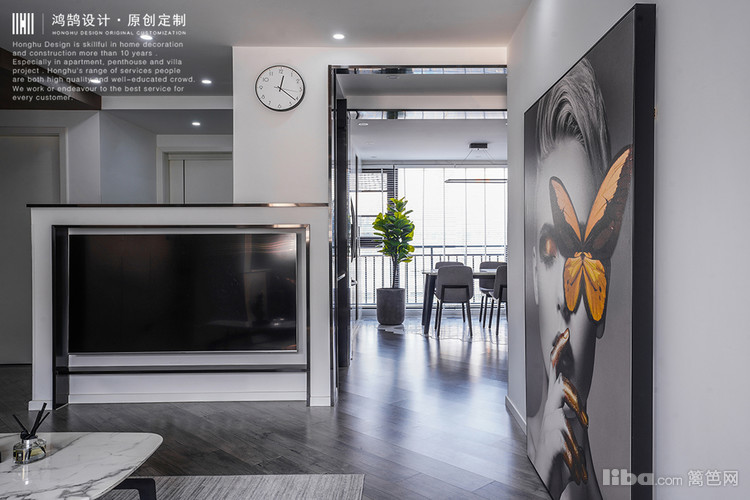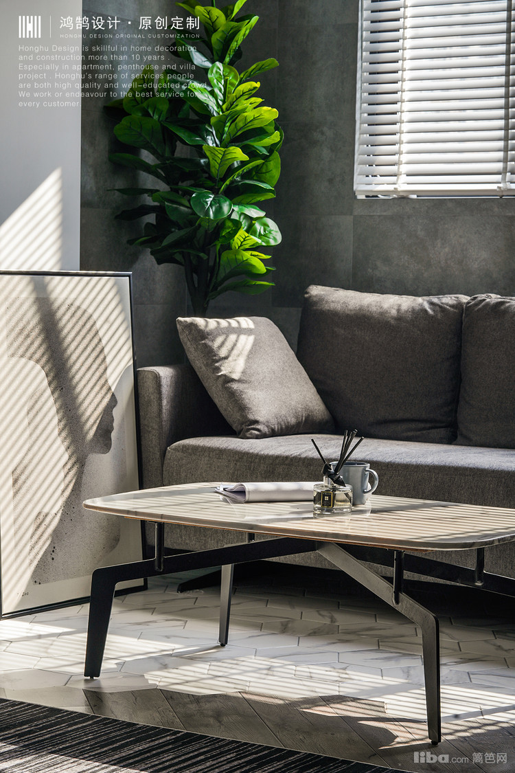 客厅的设计上,虽说房子的原户型是南北通透,但是为了使得光线更多的进入,空间能够更加 开阔,在户型上,将客厅与阳台连通,将客厅摆放动线设计为东西走向,沙发和茶几放于阳台处