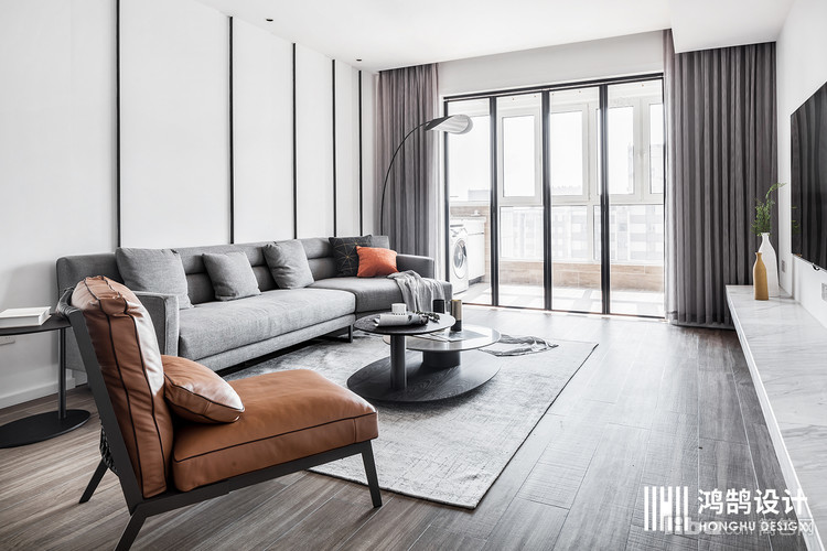 客厅选择了比较明亮的白色作为主色调,阳台用了折叠门 更好的增加了这个空间的长度 。灰色布艺沙发与黄色皮质沙发相互映衬、互相点缀,给人一种暖意融融的家庭氛围