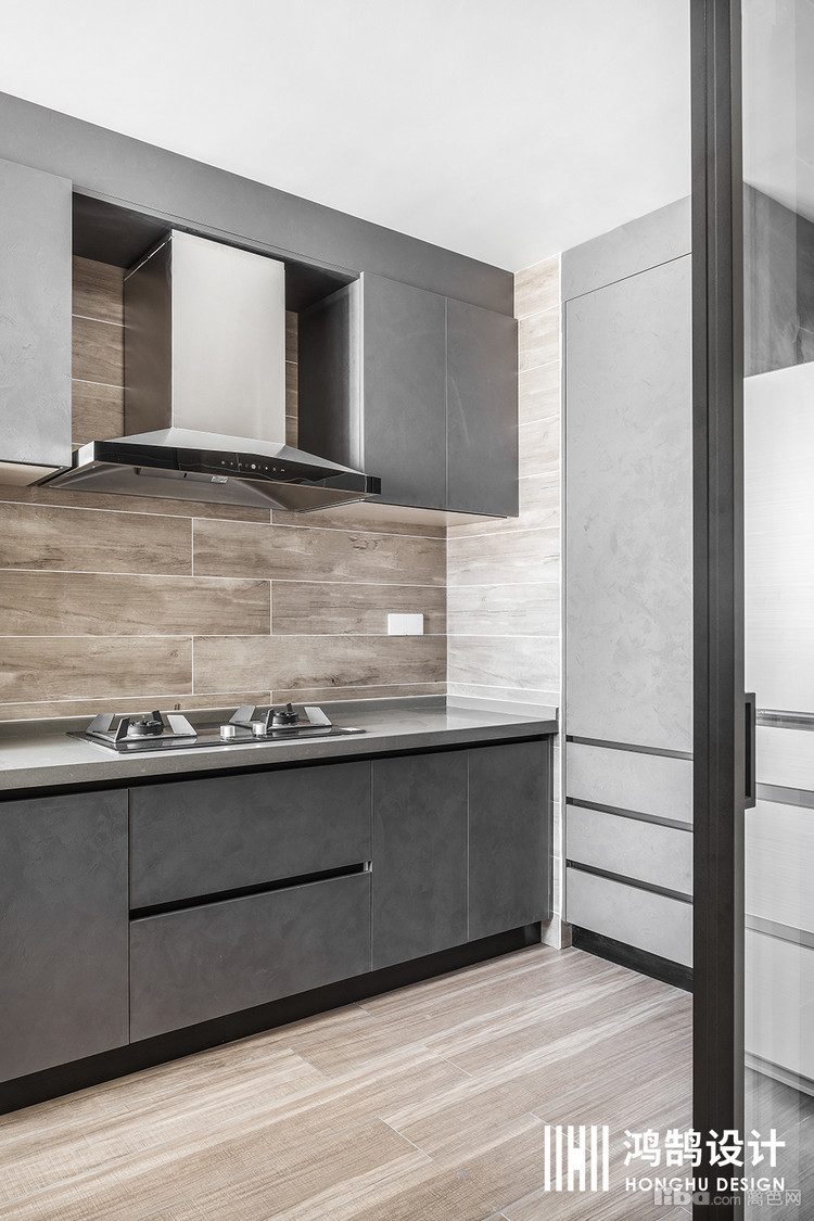 考虑到厨房的实用性,门板材质换成了灰色, 耐脏 易擦洗!