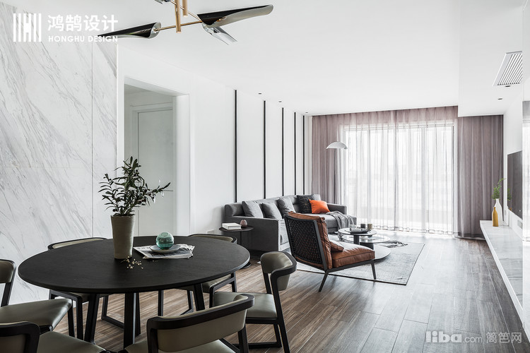 餐厅和客厅相连,使得空间得以延伸,造型上面没有采用复杂的设计手法,以简洁的现代风为主。