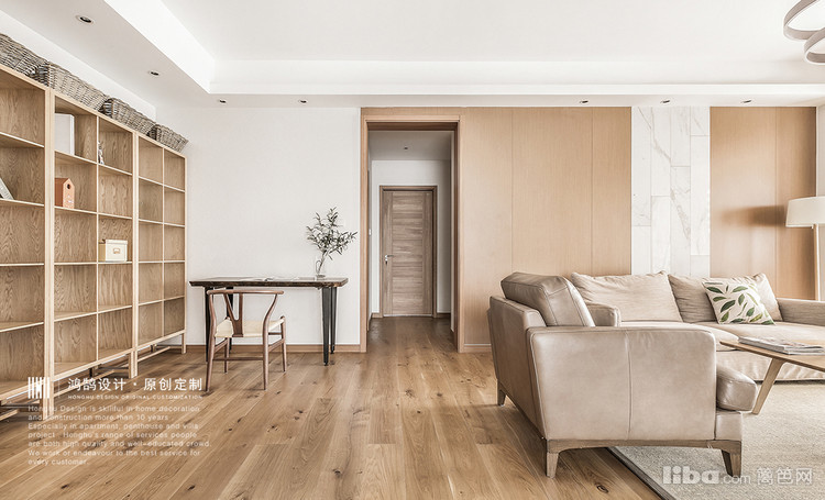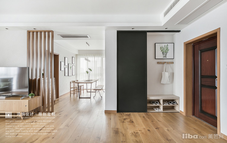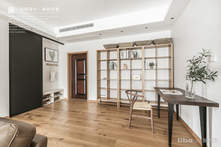 原木家具一直是日式风格不可或缺的元素,给人一种自然轻盈的感觉,进门靠墙放置木作书架既简约又实用。
