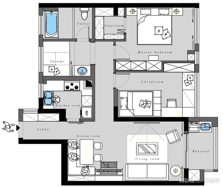 休闲区:整个家庭空间中,最休闲,最精致的就属于这个角落了,约两三个好友,共同坐在榻榻米上,说点心事,消磨时光。