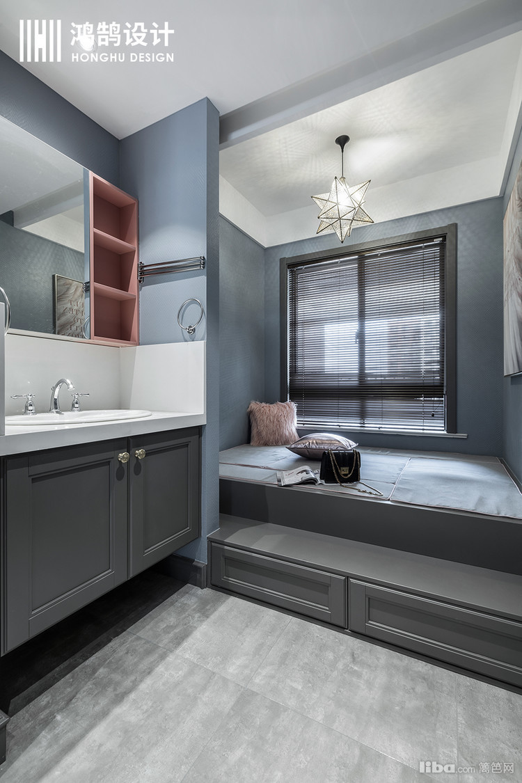 卫生间通过花砖上墙打破了整体空间的沉闷,让即使只有黑白灰的小空间里也变得格外精致有型起来。