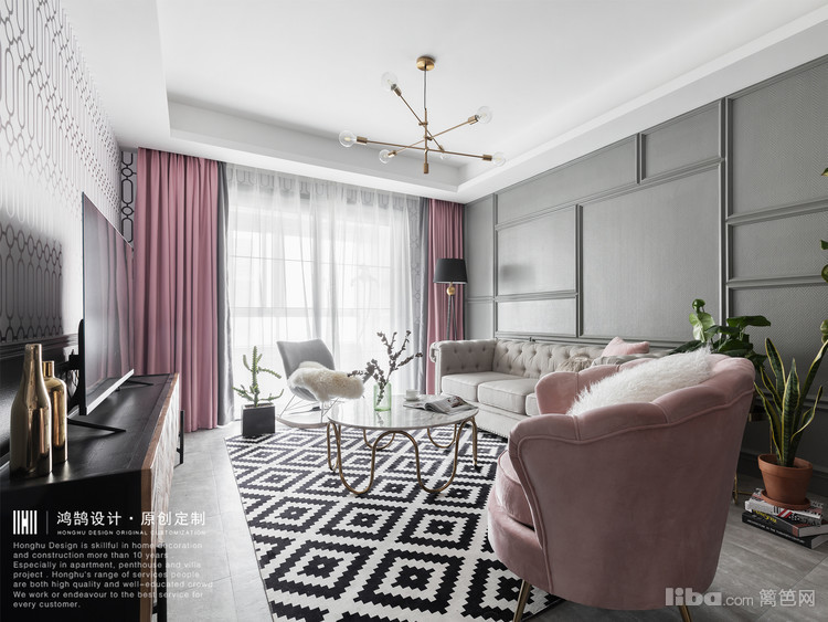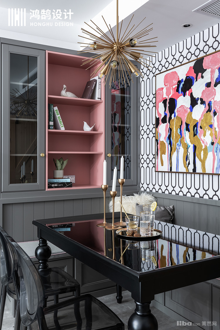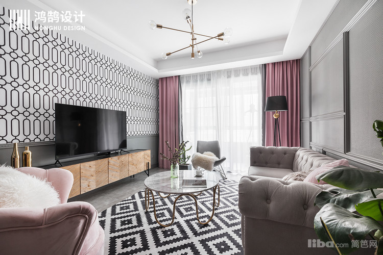 颇具现代时尚气息的搭配,在小编眼里,简直就是网红家的典范,黑白不规则形状上墙,看似非常出格的设计,却用高级灰和橡皮粉搭配使得空间充满柔和的质感。