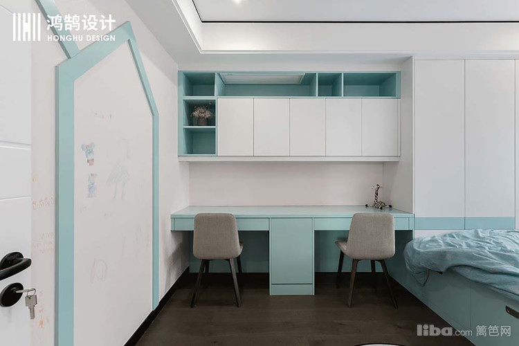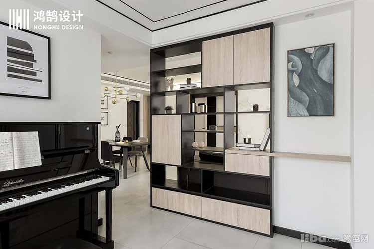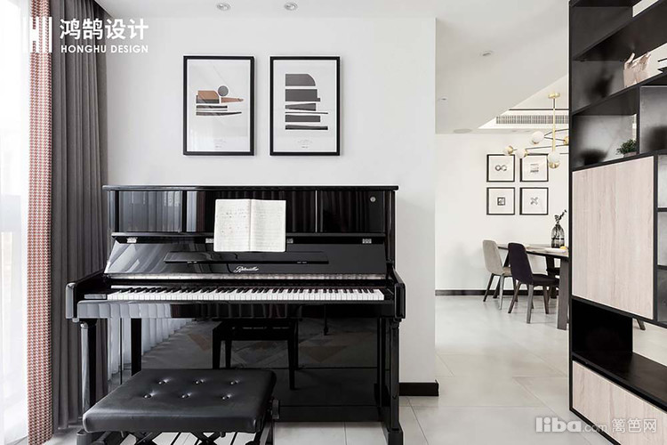 为了满足业主对于孩子的兴趣培养,设计师在客厅设计时,特别用书架隔断,隔出一个钢琴练习室。闹中取静,在家庭聚会时还能有一个展示的小舞台