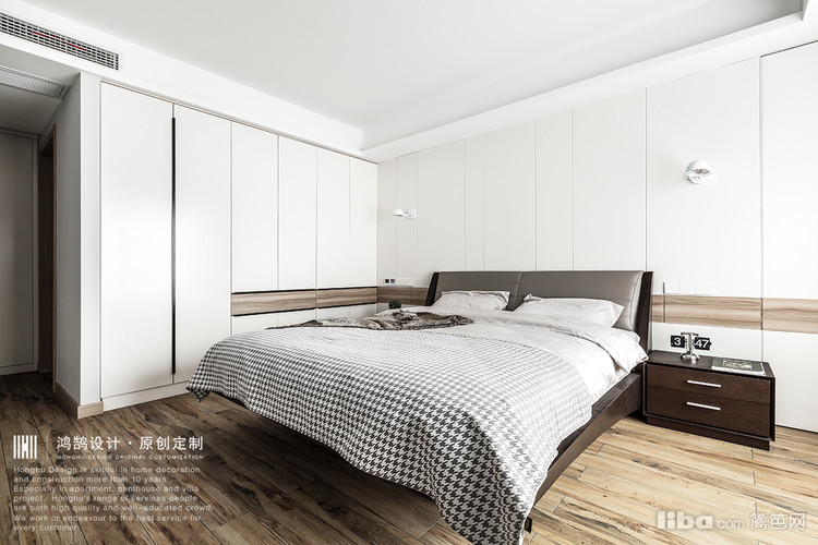 木地板搭配白色柜子,体现一种淡定安逸的氛围,卧室是奔波了一天最希望回归的地方