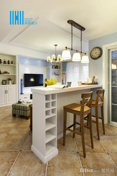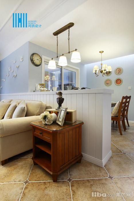 由于户型本身客餐厅区域区分不明显,在沙发设计了一个半高的隔断,一来让沙发的后背有个靠山,二来半高的隔断又可以当做吧台来使用,增加了休闲娱乐功能。