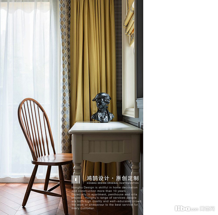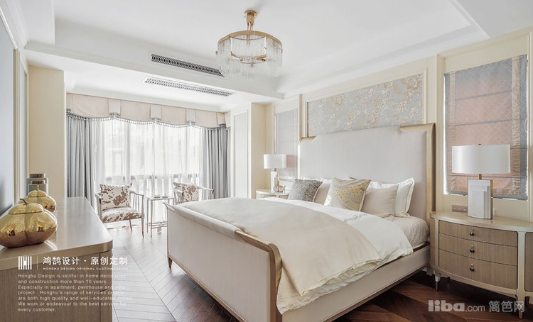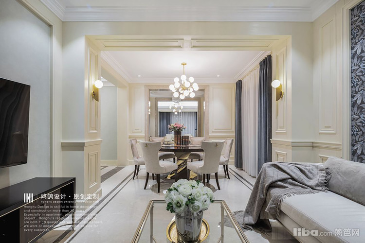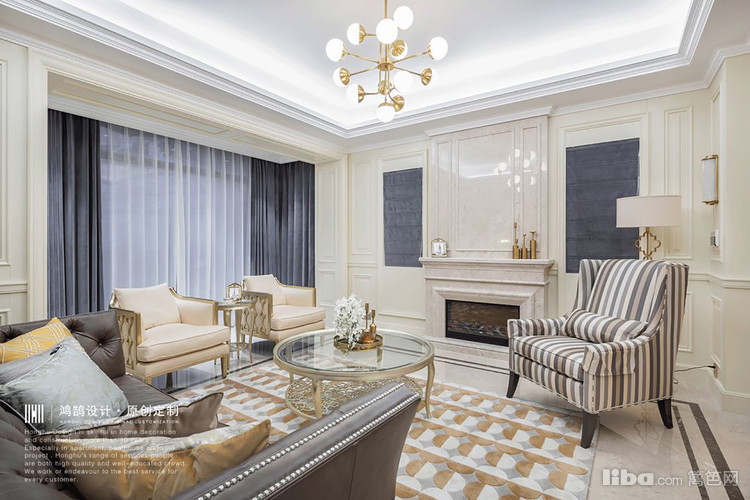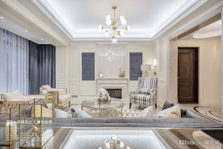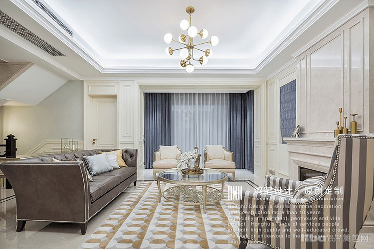精美规整的美式护墙,暖色调为主的软装和硬装搭配,通过灯饰以、窗帘等细节的点缀,让整个空间大气,华美,却不失家居的生活气息。