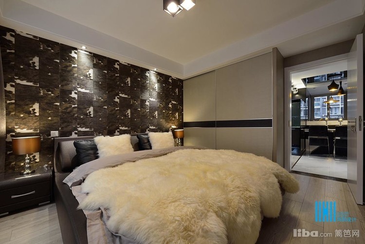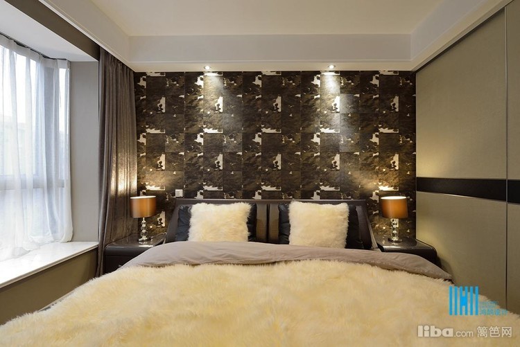 壁纸成为卧室的大亮点,与客厅相呼应