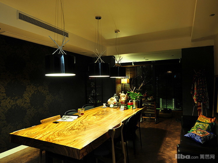 客餐厅并存的架势,介于硕大一张桌的缘故,姑且算它餐厅好了……怎么忍心告诉你这又是因一块木材引发的装修。问:为什么桌子上那么多摆件。答:因为桌大所以任性。