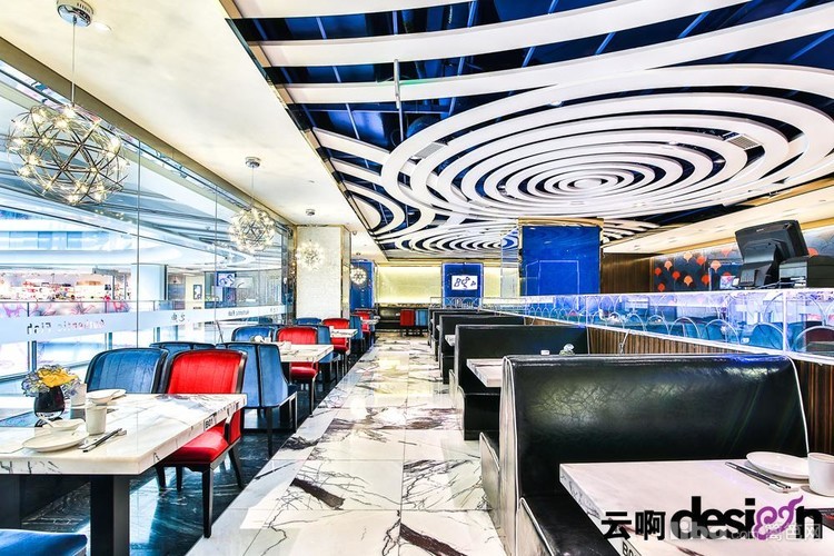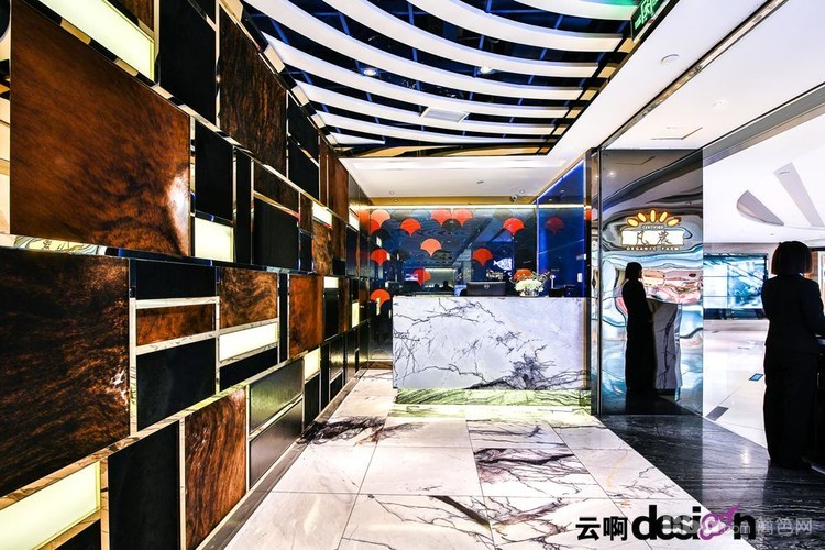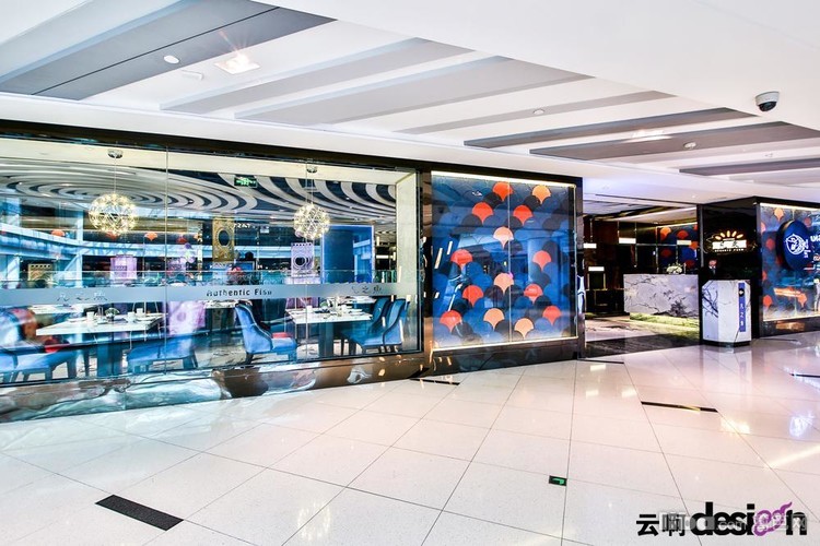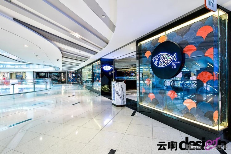 以“鱼”为主题,使用不同材质,拼接出鱼鳞、波浪等等效果,让人感觉仿佛置身海洋世界中。