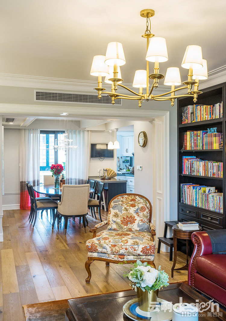 黑色整墙书架加上红色沙发,端庄得像一个黑发红唇的美少女,浓妆淡抹总相宜