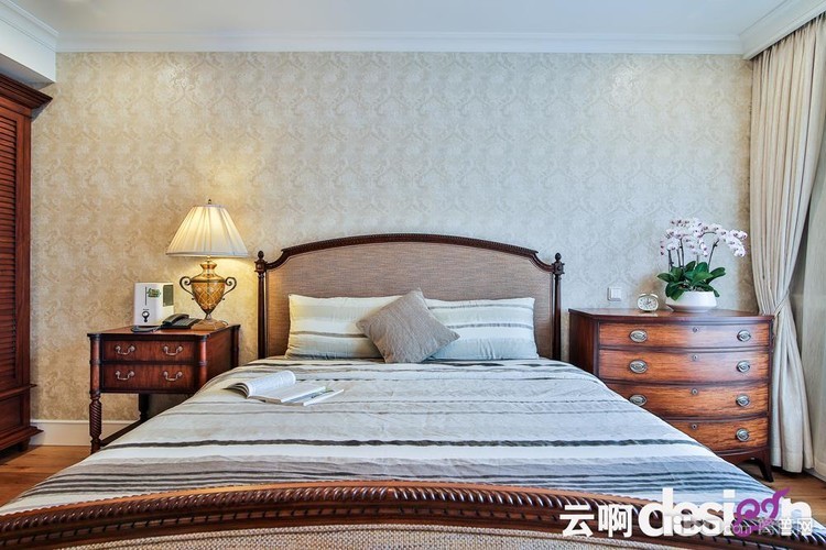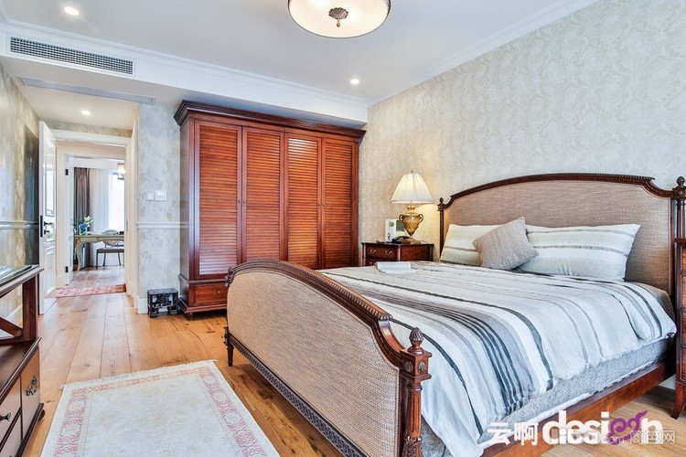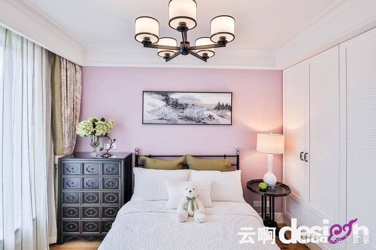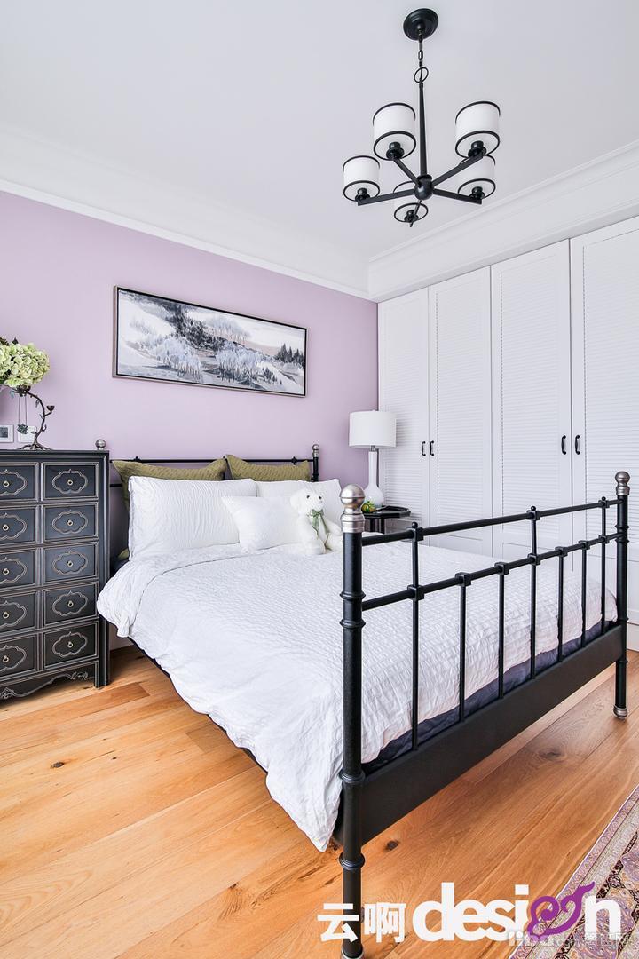 卧室的两个色系都是让人安静放松的色彩,主卧的木色家具完全没有老气横秋的感觉,素雅端庄,安静又大气。次卧的装画很好的呼应了身后的浅紫罗兰色,走进房间整个人的气息都会缓下来。