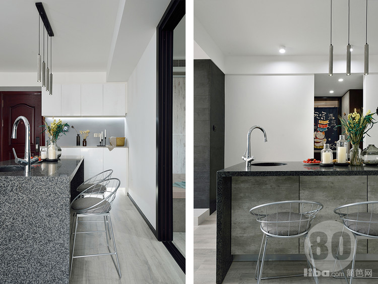 除了色彩上一定要贯彻业主所钟爱的黑灰色,只希望空间大一些,设计简洁些,造型酷一些,除了厨房最好有个能
