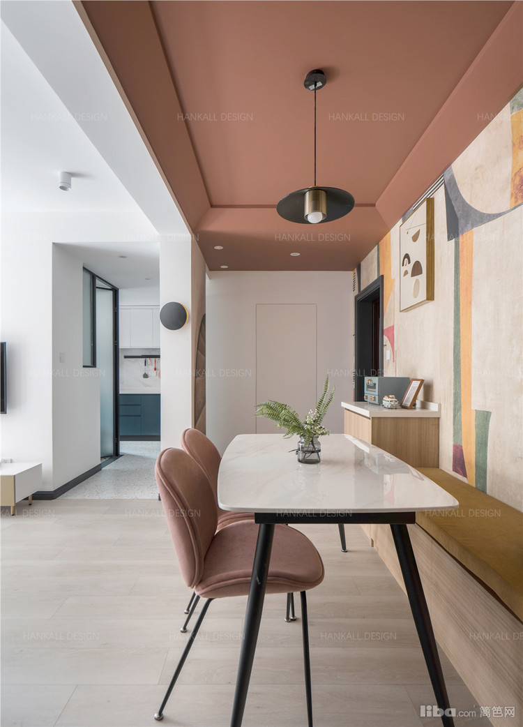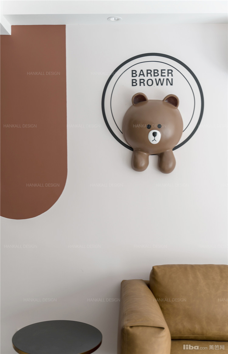 公共空间大地色系的温润质感通过壁纸纹理与色彩的拼接直观的呈现,加上弧形拱门和有趣装饰更显活泼