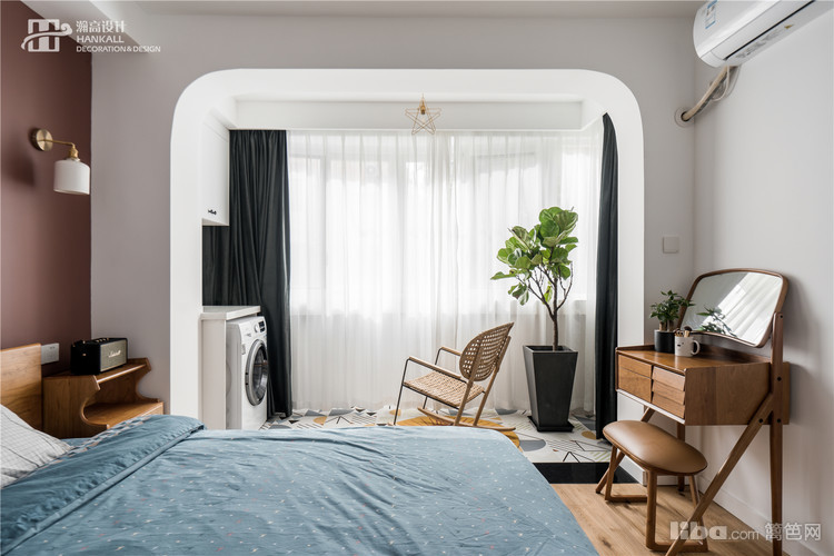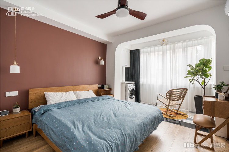 结合了日式和韩式关于木制品材质的运用手法,将业主夫妇喜欢的樱桃木完美的运用到房子的每一个角角落落。