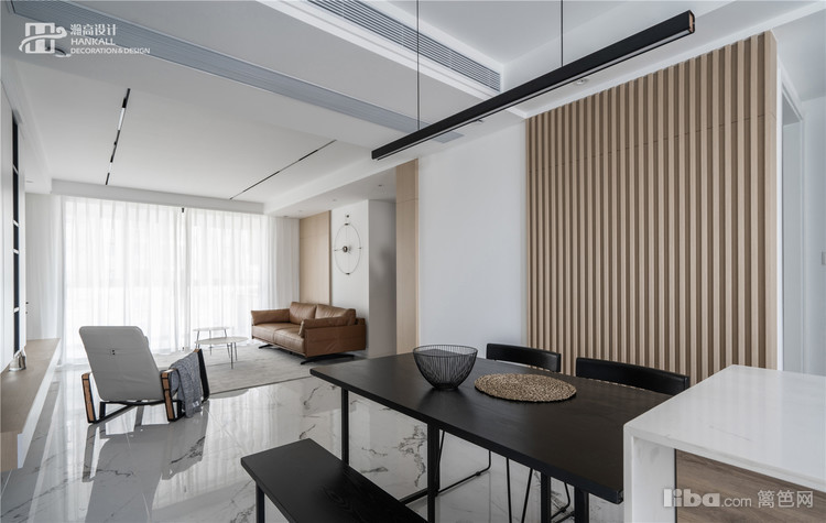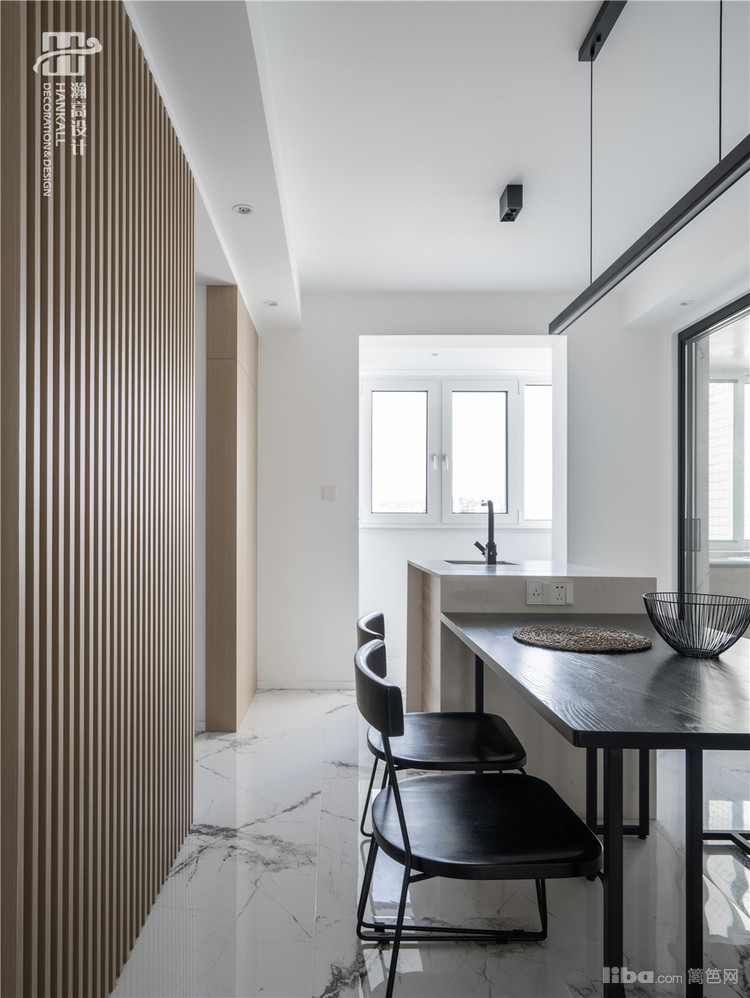 整个空间以白色为主 不同深浅层次的黑灰色为辅 局部木色的运用 让在此的生活多了一些温暖与随性